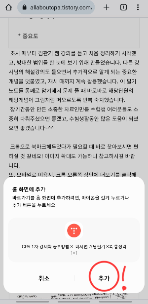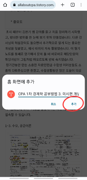 2. "홈 화면에 추가" 버튼을 누릅니다.